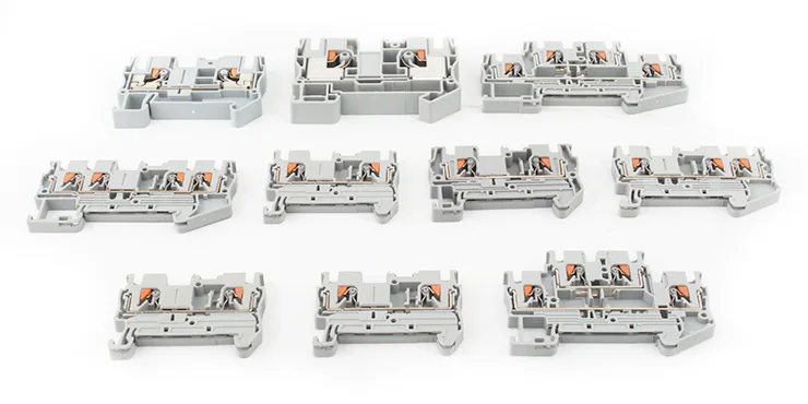 Feed seri PT liwat blok terminal rel din nambah safety lan migunani, nyuda kesalahan instalasi. Desain push-nganti-mandheg nyilikake kesalahane manungsa, dene klik tactile lan asring keprungu nandheske sambungan sing aman. Akeh varian uga kalebu titik tes sing dibangun kanggo pangukuran voltase sing aman lan tes sirkuit tanpa medhot kabel.
